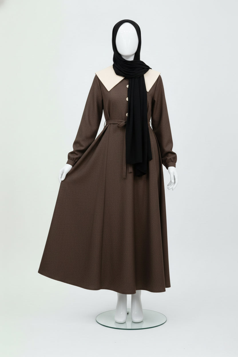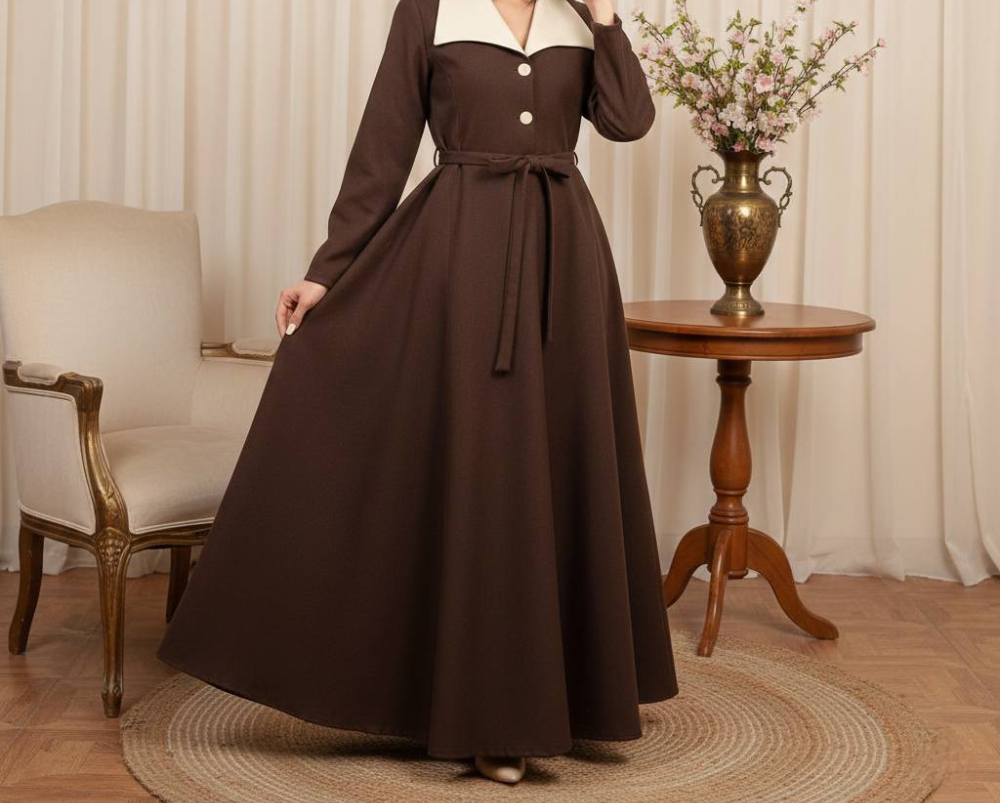Découvrez cette robe longue festive aux manches longues, conçue pour les occasions spéciales. Confectionnée dans un tissu de qualité exceptionnelle, elle se distingue par ses élégantes surpiqûres mezzanine qui ajoutent une dimension raffinée à votre silhouette. Dotée de boutons fonctionnels et d'une ceinture intégrée, cette pièce allie praticité et élégance intemporelle. Disponible de la taille unique à 46, avec des proportions généreuses : tour de poitrine 108 cm et longueur de manches 60 cm. Une création incontournable pour sublimer vos moments précieux.
