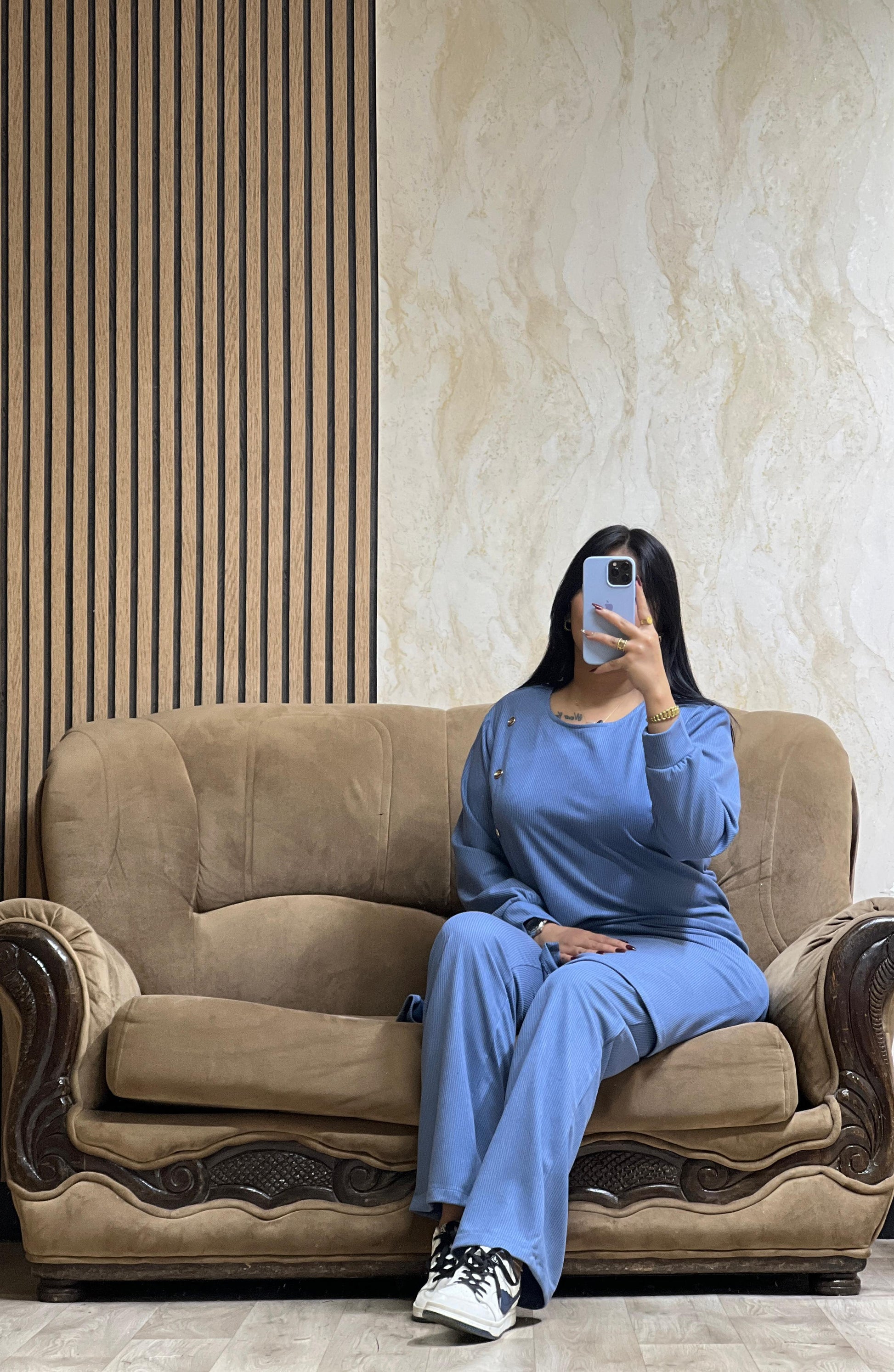 Ensemble Tunique & Pantalon Bleu– Tissu Qattifa