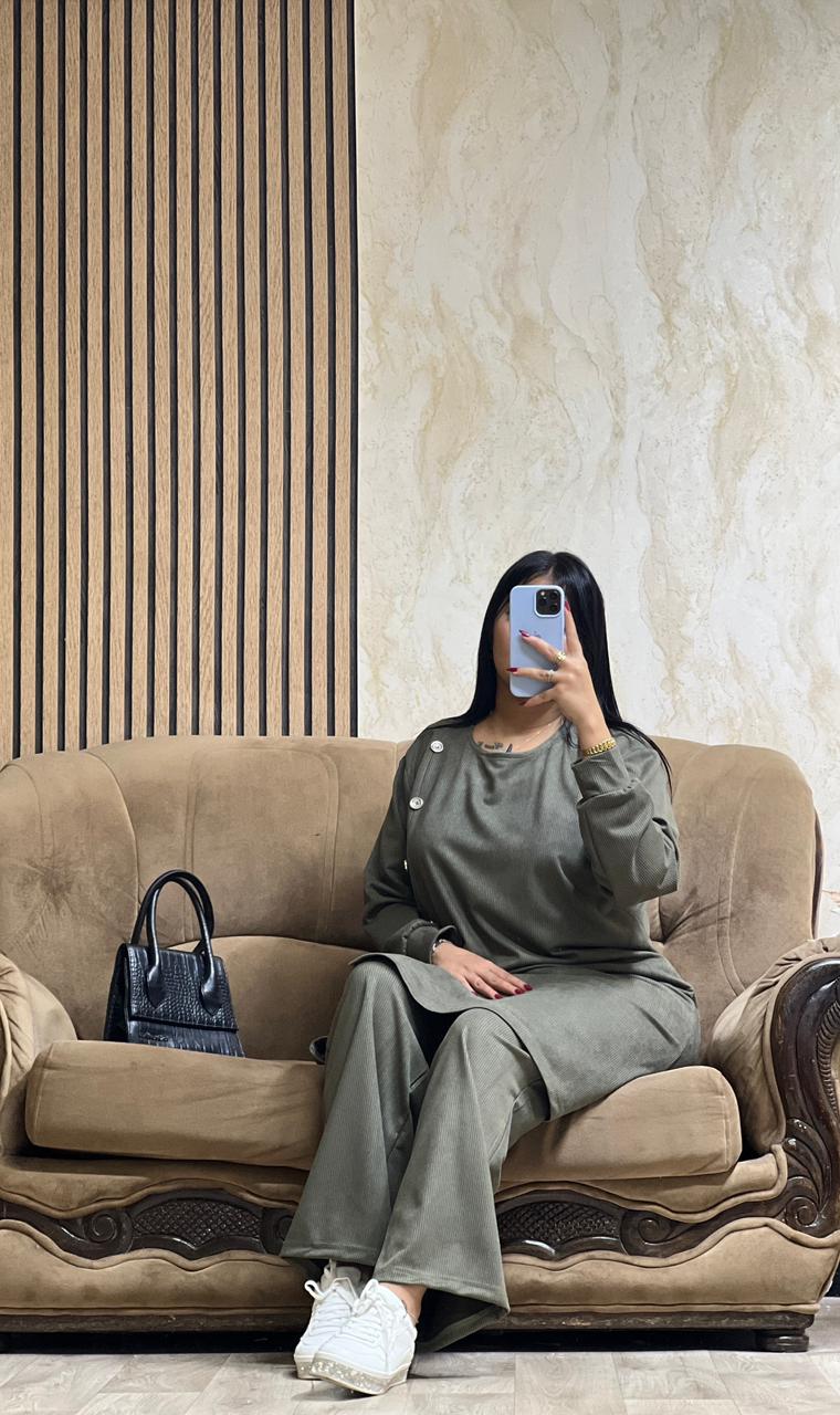 Cet ensemble sophistiqué réunit une tunique et un pantalon confectionnés en Qattifa, un tissu premium prisé pour sa douceur incomparable et sa résistance exceptionnelle. Le Qattifa se distingue par sa tombée fluide et aérienne, garantissant un confort optimal tout au long de la journée. Conçu selon les principes de la mode modeste, cet ensemble marie élégamment tradition et raffinement contemporain. La harmonie entre la tunique et le pantalon crée une silhouette intemporelle et flatteuse, adaptée aussi bien aux occasions spéciales qu'au port quotidien. Disponible en plusieurs teintes pour correspondre à votre style personnel.